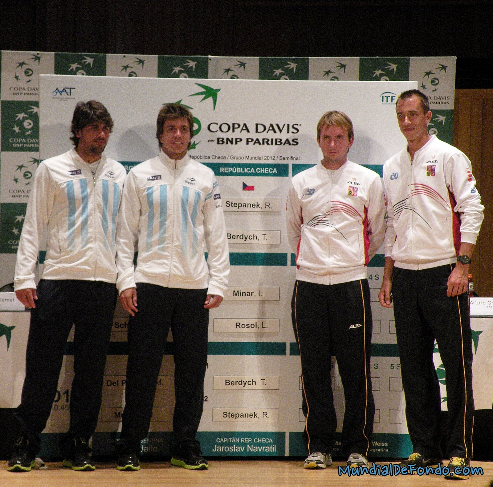 El jueves 13 de septiembre, a las 10.30hs se realizó el sorteo de la serie en La Usina del Arte, establecimiento ubicado en el barrio de Puerto Madero de la Ciudad de Buenos Aires. Juan Martín del Potro será el encargado de abrir la serie ante Radek Stepanek, el viernes desde las 10.30hs. A continuación, Juan Mónaco buscará darle un punto a la Argentina ante Tomas Berdych. El sábado, a partir de las 12.30hs, será el turno de disputar el dobles: la dupla Berlocq-Schwank enfrentará a los checos Minar-Rosol. El domingo, último día de competición, Mónaco será el primero en salir al estadio para chocar ante Tomas Berdych. Finalmente, en caso de que sea necesario, Juan Martín del Potro enfrentará a Radek Stepanek en el quinto punto. Las fotos del sorteo: