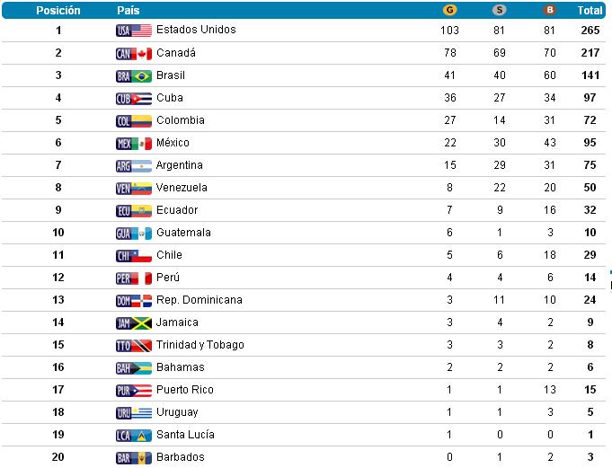 Argentina Medallas Argentinas Toronto 2015 26/07/2015 ASí QUEDÓ EL MEDALLERO DE LOS JUEGOS PANAMERICANOS TORONTO 2015 15 medallas de Oro, 29 de plata y 30 de bronce